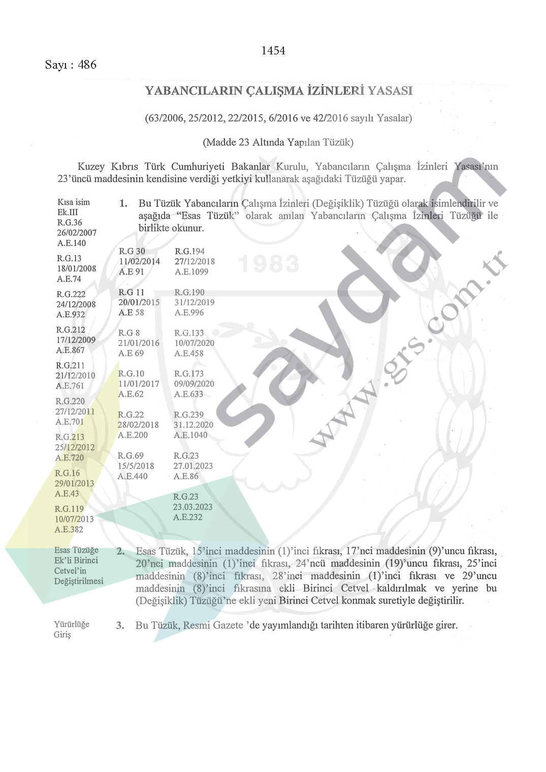 Kuzey Kıbrıs Türk Cumhuriyeti Bakanlar Kurulu, Yabancıların Çalışma İzinleri Yasası’nın 23’üncü maddesinin kendisine verdiği yetkiyi kullanarak aşağıdaki Tüzüğü yapar.