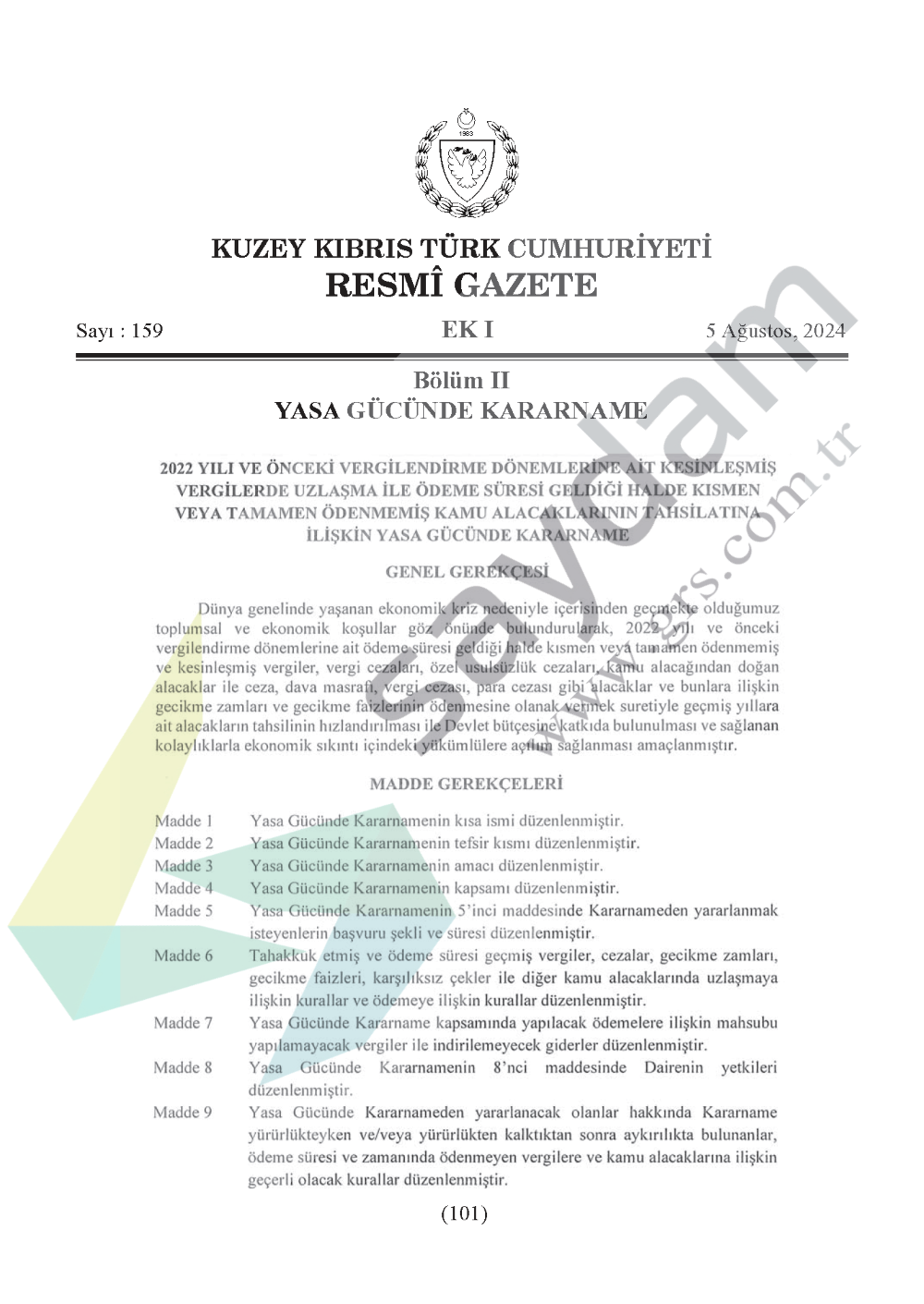 Bu Yasa Gücünde Kararname, “2022 Yılı ve Önceki Vergilendirme Dönemlerine Ait Kesinleşmiş Vergilerde Uzlaşma İle Ödeme Süresi Geldiği Halde Kısmen Veya Tamamen Ödenmemiş Kamu Alacaklarının Tahsilatına İlişkin Yasa Gücünde Kararname” olarak isimlendirilir.![]()