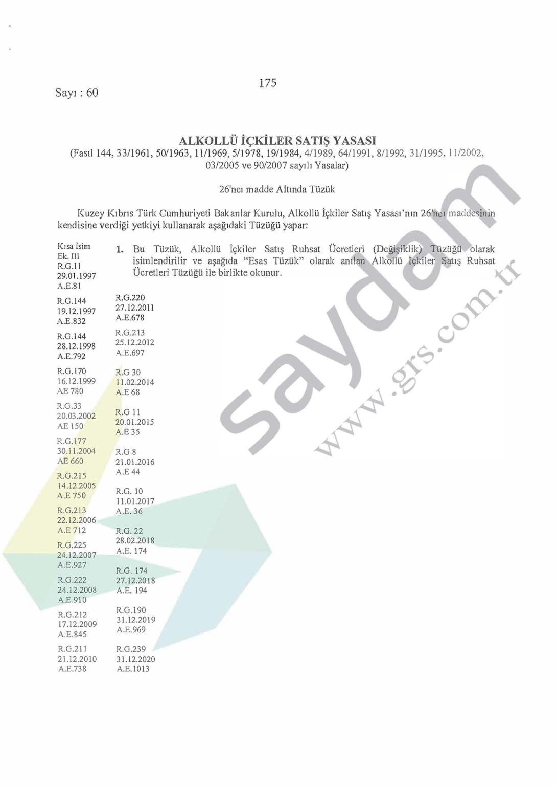 Kuzey Kıbrıs Türk Cumhuriyeti Bakanlar Kurulu, Alkollü İçkiler Satış Yasası’nın 26’ncı maddesinin kendisine verdiği yetkiyi kullanarak aşağıdaki Tüzüğü yapar.