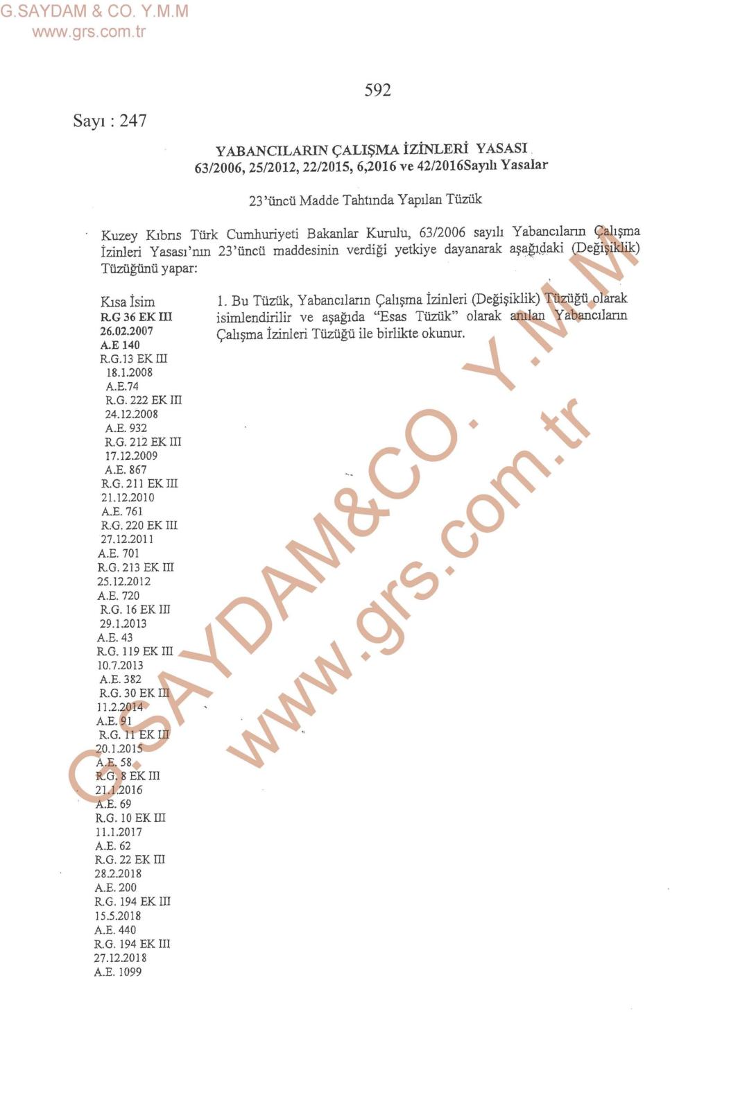 Bakanlar Kurulunun E.S. (K-I)402-2021 Sayılı Kararı İle Yabancıların Çalışma İzinleri Yasasının 23. Madde Tahtında Yapılan Tüzüğün 23. Maddesinde değişiklik yapmıştır.