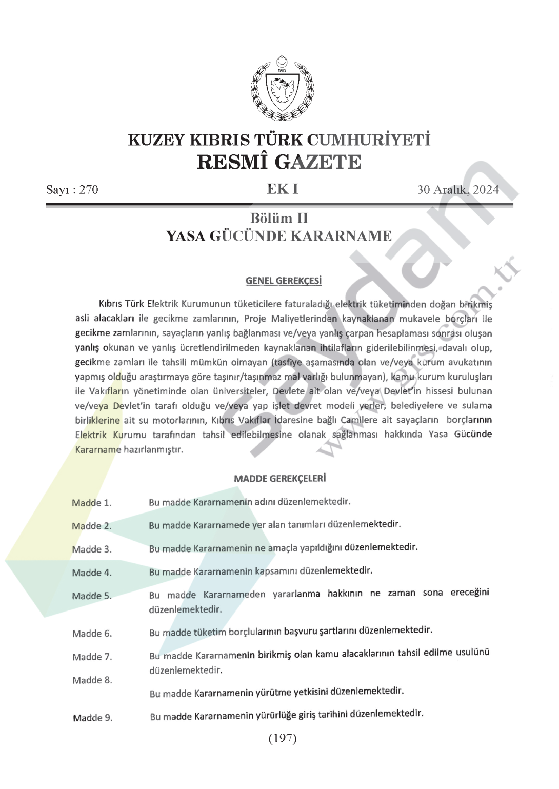 Kuzey Kıbrıs Türk Cumhuriyeti Bakanlar Kurulu Anayasa’nın 112’nci maddesinin verdiği yetkiye dayanarak aşağıdaki kararnameyi yapar.Görsel kaldırıldı.Görsel kaldırıldı.Görsel kaldırıldı.