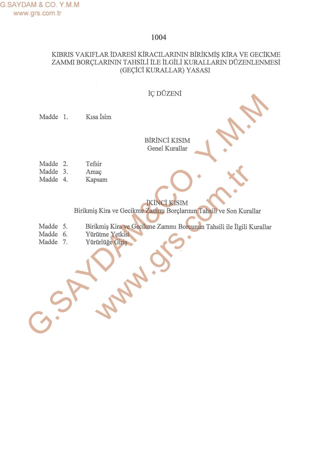 RG S.62 EK I 16 Mart 2021 tarihli Resmi Gazetede;Kuzey Kıbrıs Türk Cumhuriyeti Cumhuriyet Meclisi aşağıdaki Yasayı yapar.
