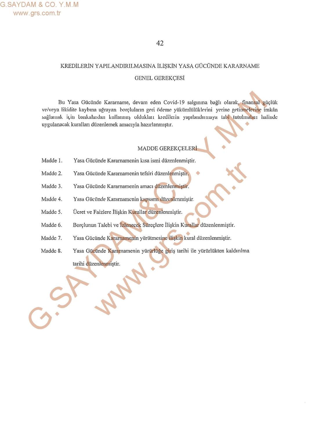 Bu Yasa Gücünde Kararname, devam eden Covid-19 salgınına bağlı olarak, finansal güçlük ve/veya likidite kaybına uğrayan borçluların geri ödeme yükümlülüklerini yerine getirmelerine imkan sağlamak için bankalardan kullanmış oldukları kredilerin yapılandırmaya tabi tutulması halinde uygulanacak kuralları düzenlemek amacıyla hazırlanmıştır.Görsel kaldırıldı.Görsel kaldırıldı.Görsel kaldırıldı.