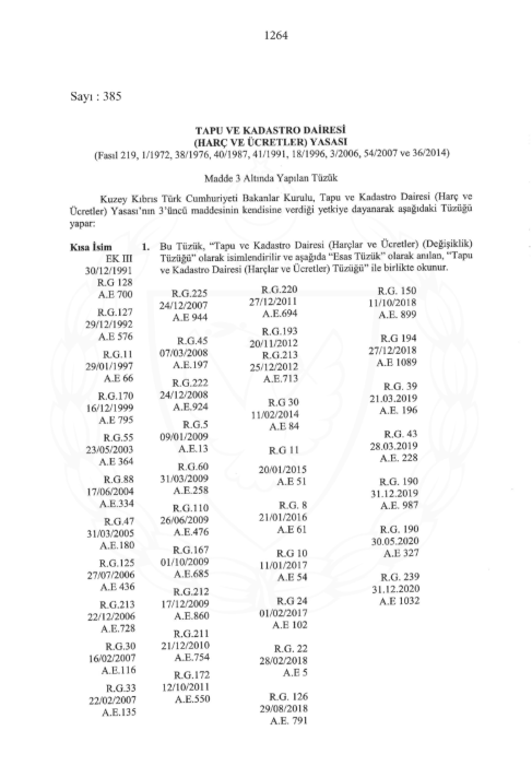 Tapu ve Kadastro Dairesi (Harç ve Ücretler) Yasası için tıklayınız.