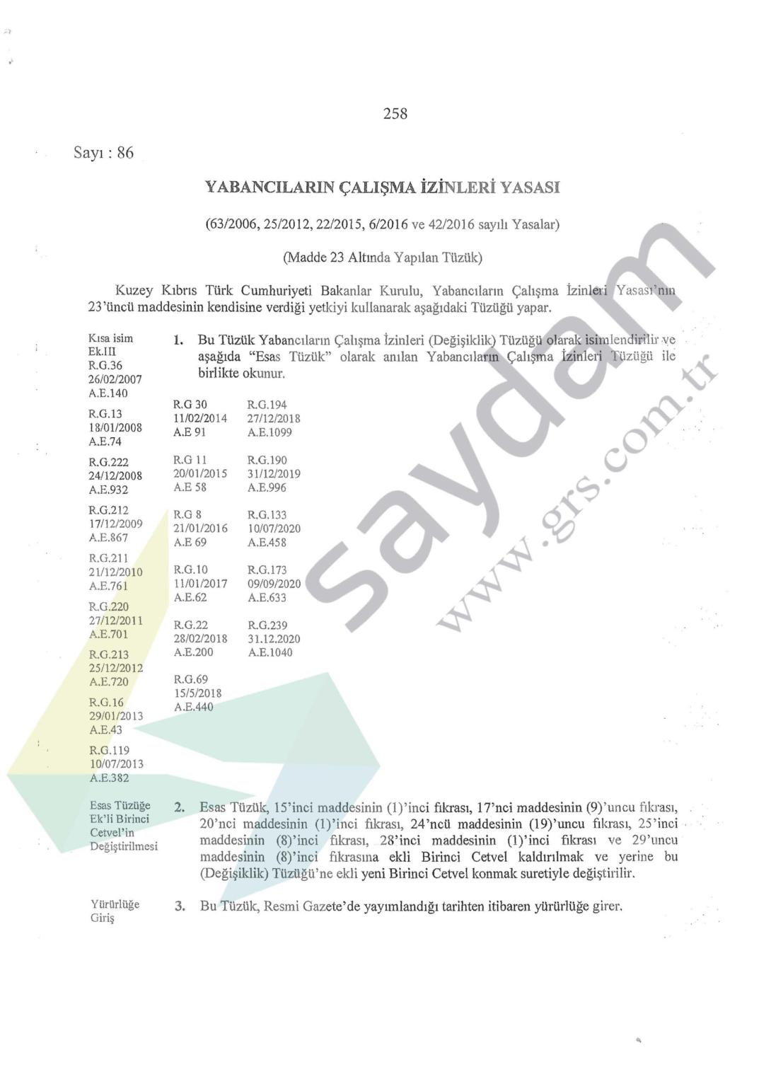 Kuzey Kıbrıs Türk Cumhuriyeti Bakanlar Kurulu, Yabancıların Çalışma İzinleri Yasası’nın 23 ‘üncü maddesinin kendisine verdiği yetkiyi kullanarak aşağıdaki Tüzüğü yapar.Görsel kaldırıldı.