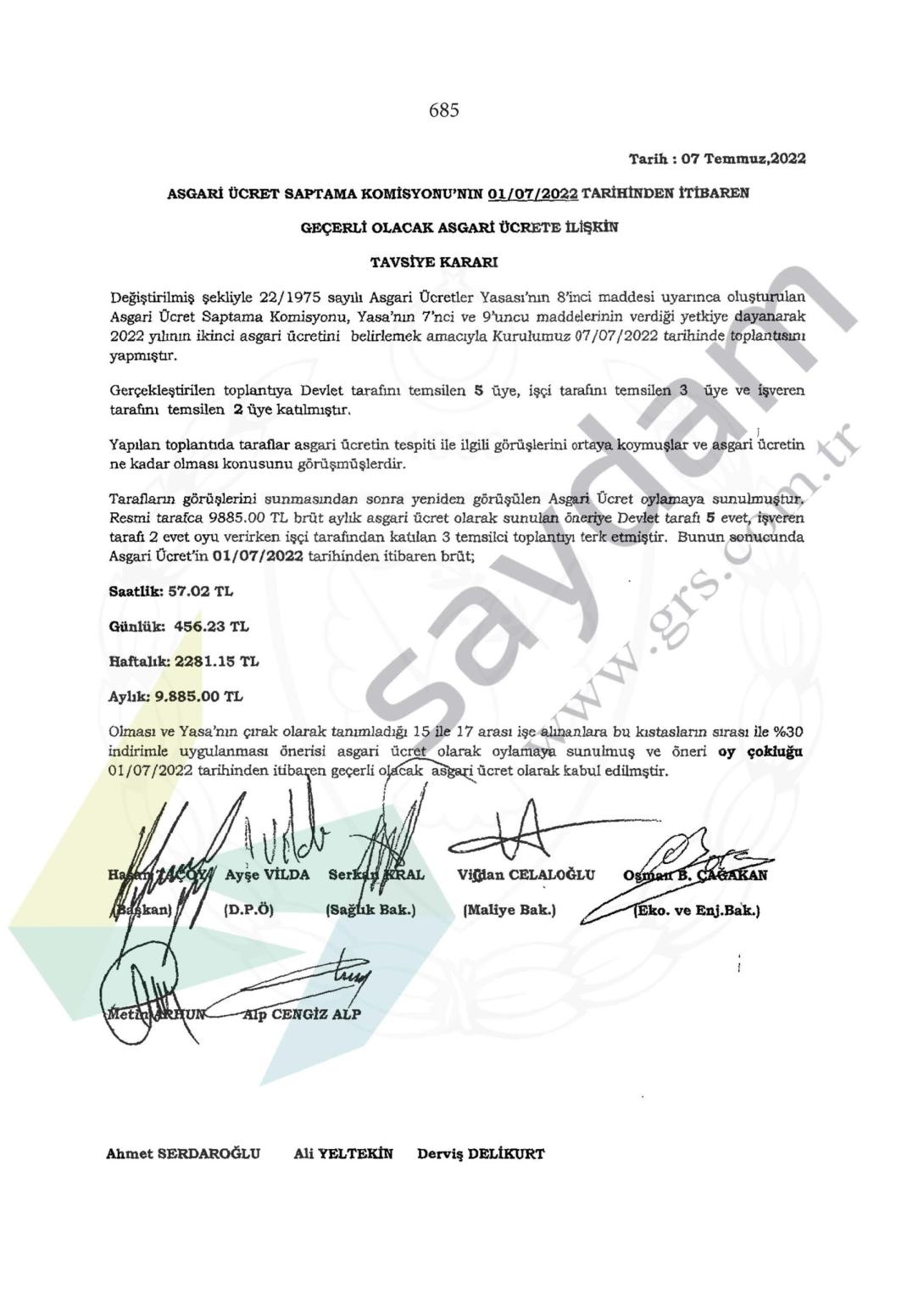 07.07.2022 Tarih ve 152 Sayılı Resmi Gazetede yeni asgari ücret yayınlandı.
